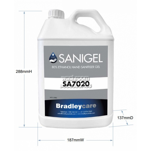 This Sa7020 Sanigel Hand Sanitiser Gel 80 Percent is a 100% original and authentic product backed 100% by its manufacturer Bradley. All our major brands that we supply such as Abc, Alltissue, Alvdo, Astrawalker, Avail Designs, Avenir, Barkly Basics, Best Buy, Billi, Bio Active, Bobrick, Bradley, Brady, Britex, Brodware, Calfarme, California Scents, Caroma, Castaway, Chux, Clark, Clorox, Con Serv, Deb, Depend, Doability, Dolphin, Dorf, Dormakaba, Dynamic Resources, Dyson, Eco Natural, Edco, Elyse, Enware, Franke, Geberit, Gentec, Glad, Hafele, Halyard, Hand Rail Industries, Henrietta, Hideaway, Huggies, Idc Medical, Jackson Safety, Jasol, Jd Macdonald, Jetdryer, Jetspray, Johnson Suisse, Kimberly Clark, Kimcare, Kimtech, Kleenex, Koala Kare, Madinoz, Mediclinics, Mediflex, Meir, Metlam, Mitsubishi, Nero, Nover, Oliveri , Oso, Parisi, Poise, Pressalit, Primesource, Rba, Reece, Rogerseller, Rubbermaid, Scott, Steeldrill, Stormtech, Stylus, Superquip, Thornthwaite, Tork, True Blue, Ultrafresh , Velo, Verde, Visualise, Wd 40, Whiteley, Wondergrip, Worknplay, Wow Wipes, Wypall, Zip, are at the best prices available and have all original warranties and guarantees.